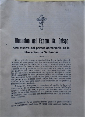 1937 - 26 de agosto - 1938. Aniversario de la Liberación de Santander. Alocución pastoral.