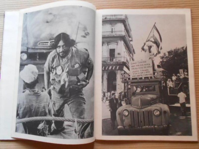 Pérdidas en el lomo, aunque las bisagras están fuertes, ligeros roces y alguna tenue huella en las cubiertas, algunas tenues huellas de óxido en el interior. No es un ejemplar muy bueno, pero este suele ser un libro muy castigado: la encuadernación en cartoné fotográfico es muy delicado, que se roza muy facilmente, y los lomos en cartoné se rompen. Además es un libro muy popular que se mira y se enseña, y encima, para colmo, ha tenido que aguantar el clima de Cuba. Con todo esto, este es un ejemplar bastante aceptable, y se encuentra en mejores condiciones que la mayor parte de los que se ofrecen a la venta. WorldCat cita 39 ejemplares, pero ninguno en España - aunque hay uno en el MNCARS. Este es probablemente el fotolibro más célebre de la Revolución Cubano, y uno de los más importantes de su época.