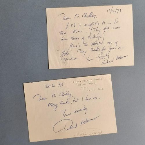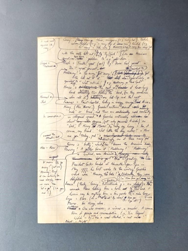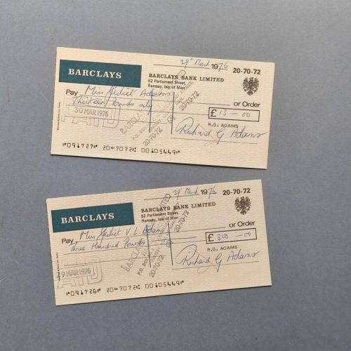 One folio sheet, handwritten on both sides, with 2 leaves of jottings on notepaper of The Plaza, Western International Hotels of ideas for the same text. Together ¡with two cancelled cheques signed by Adams, and two handwritten notes to his friend the bookdealer Joihn Chidley.