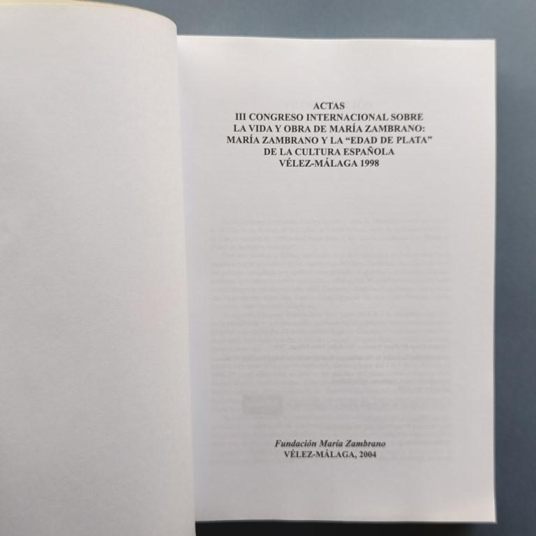 Actas III Congreso Internacional sobre la Vida y Obra de María Zambrano. María Zambrano y la "Edad de Plata" de la Cultura española Vélez Málaga 1998.
