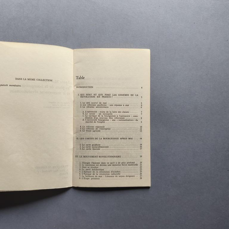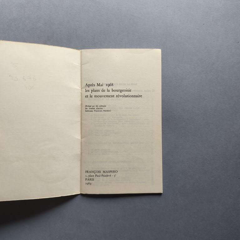 Après mai 1968. Les plans de la bourgeoisie et le mouvement révolutionnaire. (Rédigé par des militants des comités d'action Sorbonne, Vincennes, Nanterre.