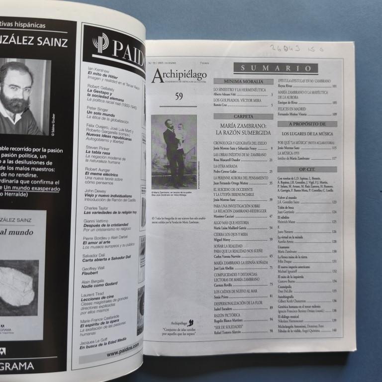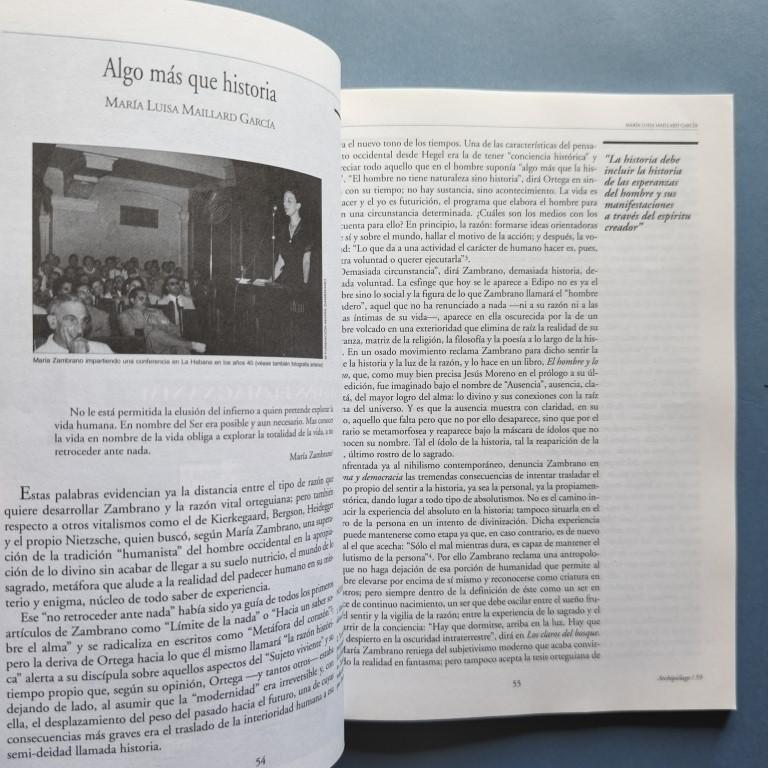 Inédito de María Zambrano. Textos de Rosa Mascarell Dauder, Pedro Cerezo Galán, María Luisa Maillard García, José Luis Abellán, etc. Algunos subrayados.