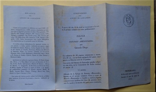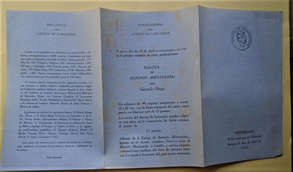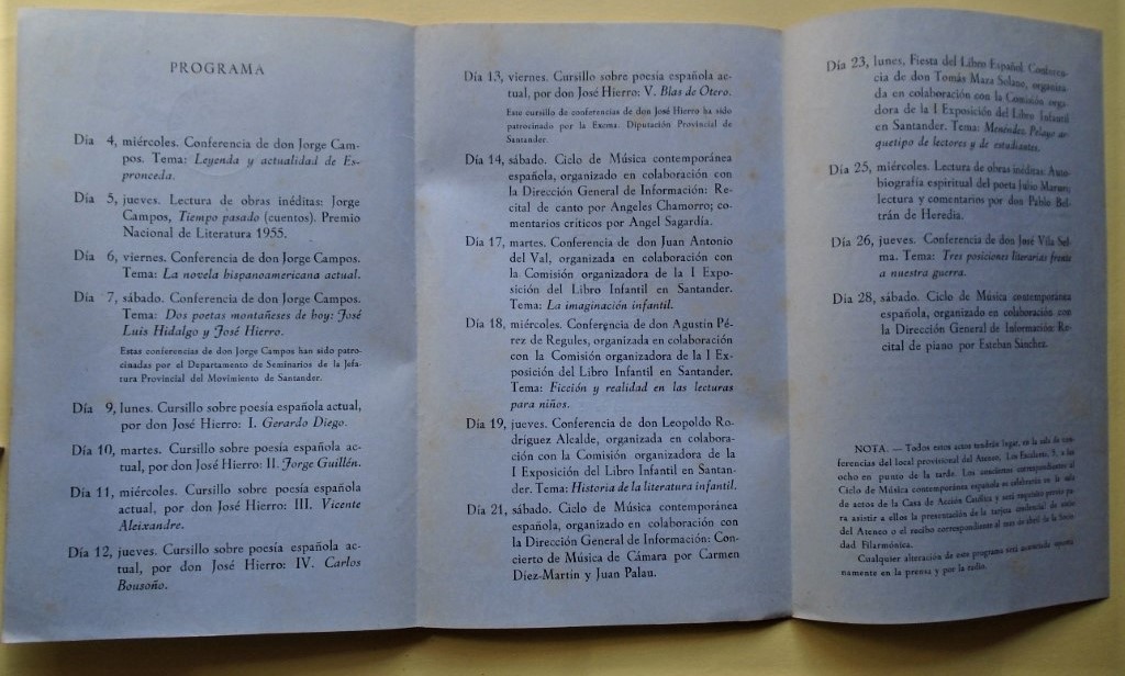 El programa incluye cinco clases de José Hierro sobre poetas actuales, conferencias de Jorge Campos (sobre Hierro y José Luis Hidalgo, etc.) , de Rodríguez Alcalde, Julio Maruri, etc, y anuncia la publicación de Egloga de Antonio Bienvenida de Gerardo Diego.