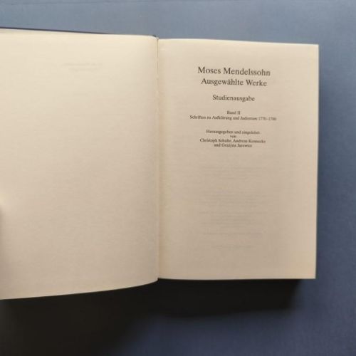 Ausgewählte Werke. Studienausgabe. Band 1: Schriften zur Metaphysik und Ästhetik 1755-1771. Band 2: Schriften zur Aufklärung und Judentum 1770-1786. Herausgegeben und eingeleitet von Christoph Schulte, Andreas Kennecke und Grazyna Jurewicz.. " vols., complete.