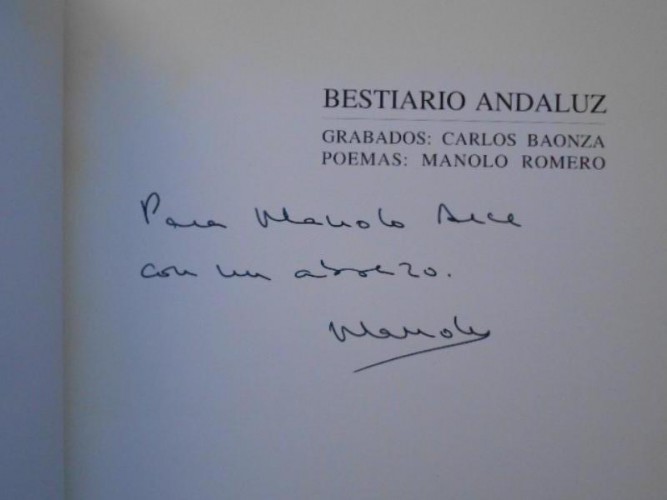 Dedicatoria autógrafa de Manolo Romero.
