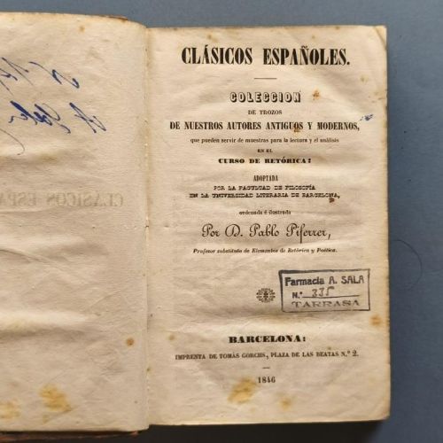 Firmas y ex-libris. La mayor parte del libro está dedicada a una historia de la literatura española, desde la edad media hasta Mariano José de Larra, con mayor atención a los autores de los siglo de oro.