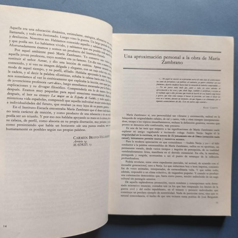 María Zambrano. Manuel Andújar, José L. Aranguren, Isabel de Armas, Enrique Azcoaga, Carmen Bravo Villasante, Héctor Ciocchini, Rosa Chacel, Francis Gutiérrez Carbajo, Blas Matamoro. Jesús Moreno Sanz, José Ortega, Juan Rof Carballo, José Salinero Portero, Francisco J. Satué y Concha Zardoya.