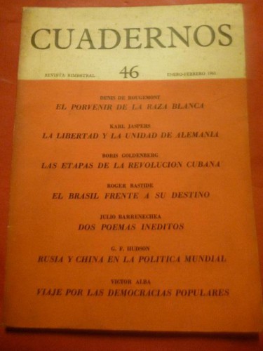 Revista dirigida por Julián Gorkin. Jorge Icaza, Laín Entralgo sobre Maragall, Garagorri, etc.