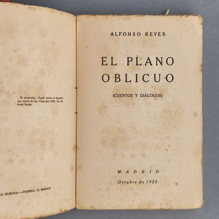 El Plano Oblicuo. (Cuentos y diálogos). (Ejemplar dedicado).