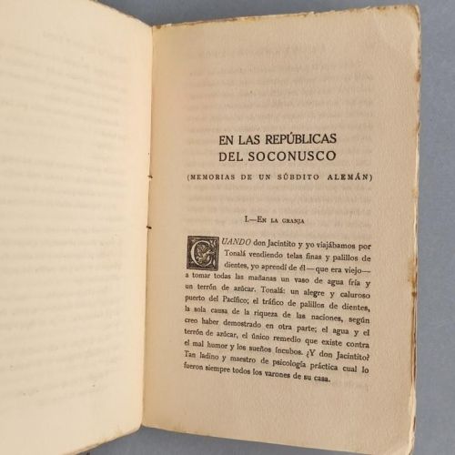 Bisagras reforzadas, con pérdida de 7cm. de lomo; huellas de óxido en los preliminares. Dedicatoria autógrafa a Alberto Zúñiga Fombona. Palau 265410.