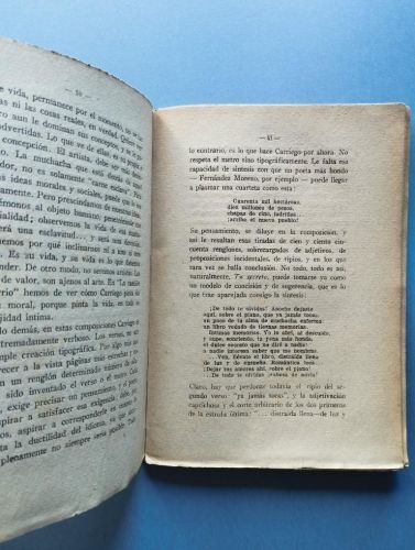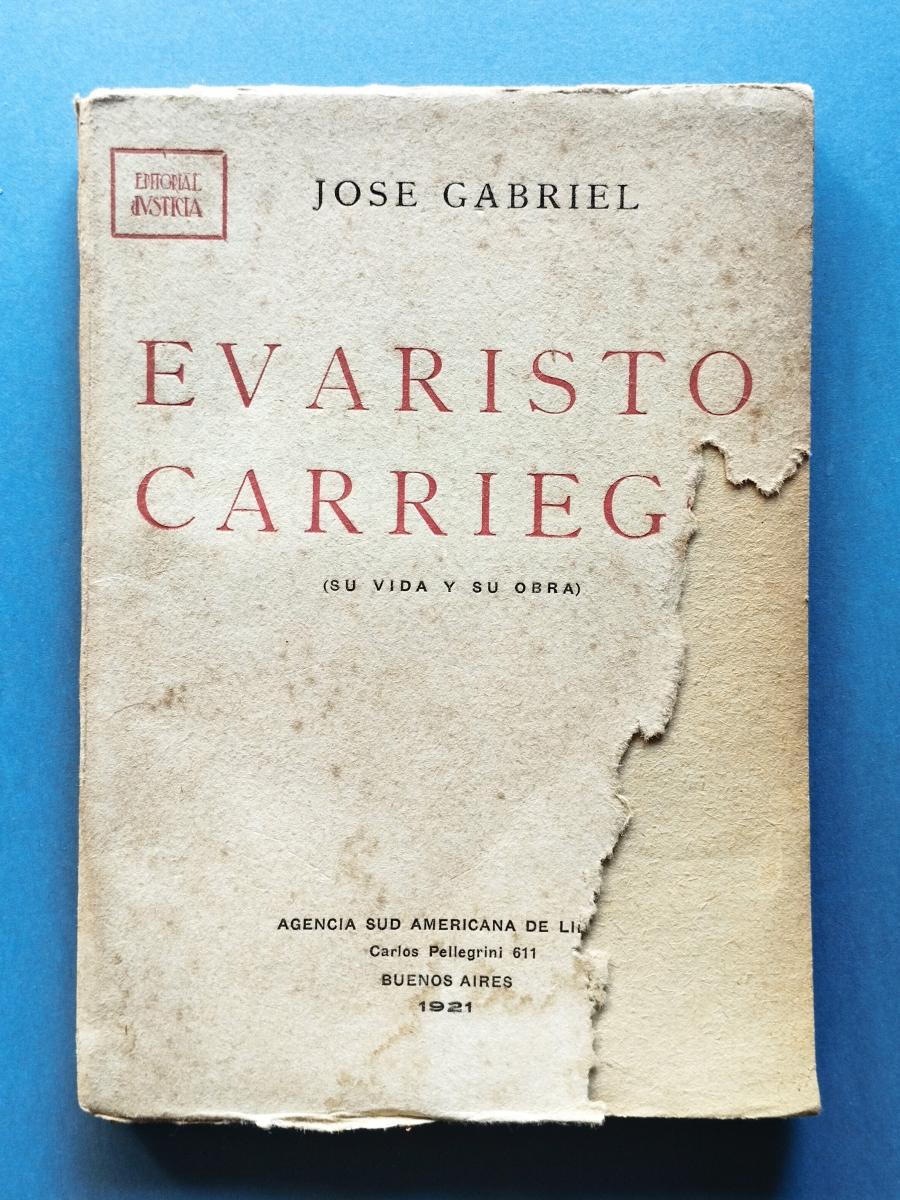 Falta una parte de la cubierta anterior. Sobre la extraordinariamente rica y variada vida de José Gabriel López Buisán (Torres del Obispo, Aragón, 1896 – Buenos Aires, 1957)., periodista, anarquista, trotskista y, finalmente, peronista, hay una buena biografía en Diccionario Biográfico de Izquierdas Latinoamericanos que se encuentra en el web. Este primer estudio crítico y biográfico sobre el poeta Carriego, autor de tan solo un libro en vida, fue publicado nueve años antes del de Jorge Luis Borges y es más raro.