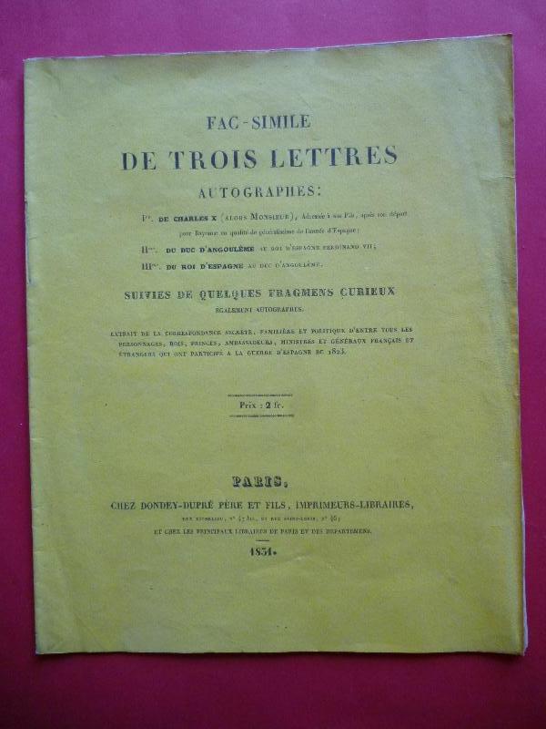 A taster from a (?) dealer of an archive he has for sale, of 288 documents relating to the French invasion of Spain in 1823. The Ch. P....quoted above is from the 'Avis de l'éditeur'. Se trata de una muestra de un librero de un archivo que tiene a la venta de 288 documentos relacionados con la invasión de Angoulême en abril de 1823.