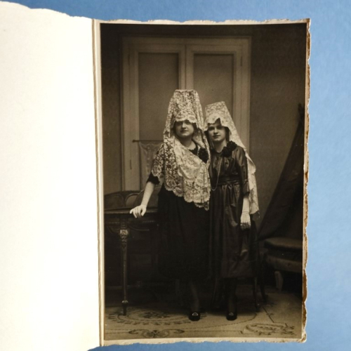 Fotografía de estudio de dos mujeres vestidas de manolas (¿o majas?) madrileñas.