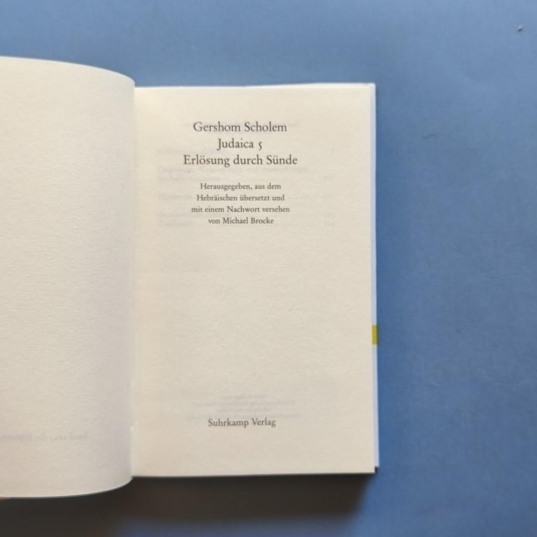 Judaica 5. Erlösung durch Sünde. Herausgegeben, aus dem Hebräischen übersetzt und mit einem Nachwort versehen von Michael Brocke.