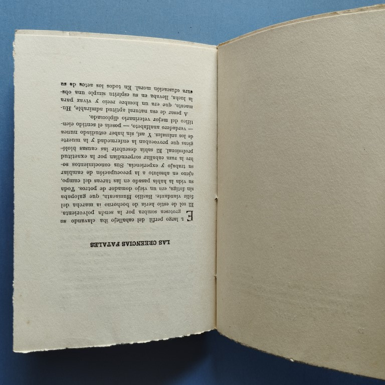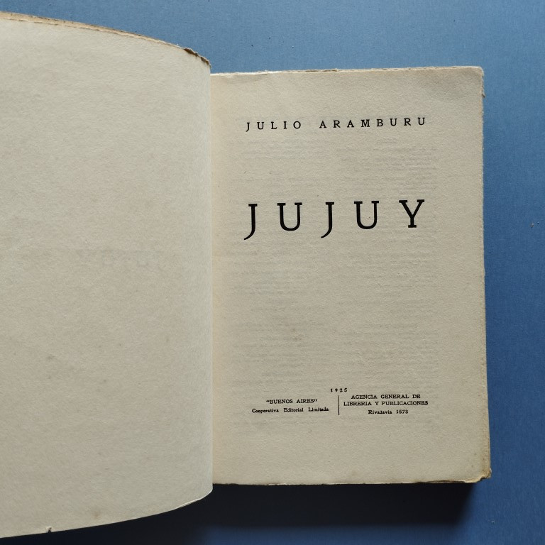 Muy raro, solamente hemos encontrado una referencia a un ejemplar en una biblioteca sin identificar de Buenos Aires - ¡hay más referencias a la 2ª edición para bibliófilos (Buenos Aires 1935) de 50 ejemplares! Tampoco hemos encontrado muchos detalles sobre el autor, a parte de su nacimiento en la provincia andina de Jujuy en 1898. Buen ejemplar.