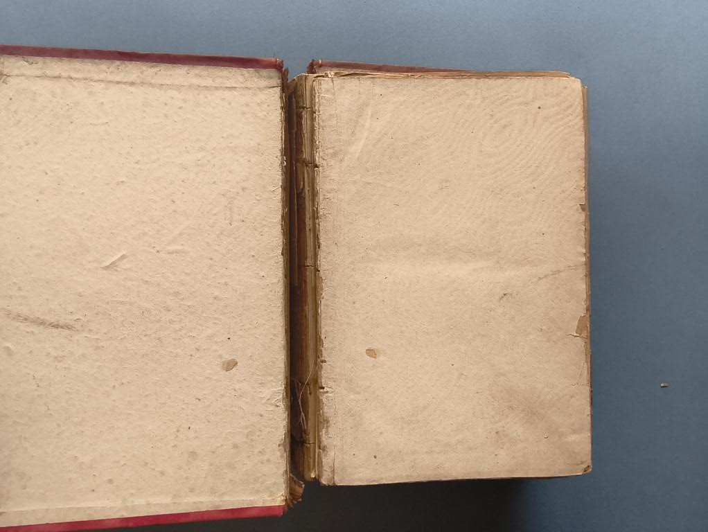 Cubiertas sueltas, algunos cuadernillos y hojas sueltas o semi sueltas al final de cada tomo, con roturas marginales. Los dos tomos completos de páginas y láminas, pero, obviamente, requiere una restauración a fondo. Encontrará más fotos en nuestra web.