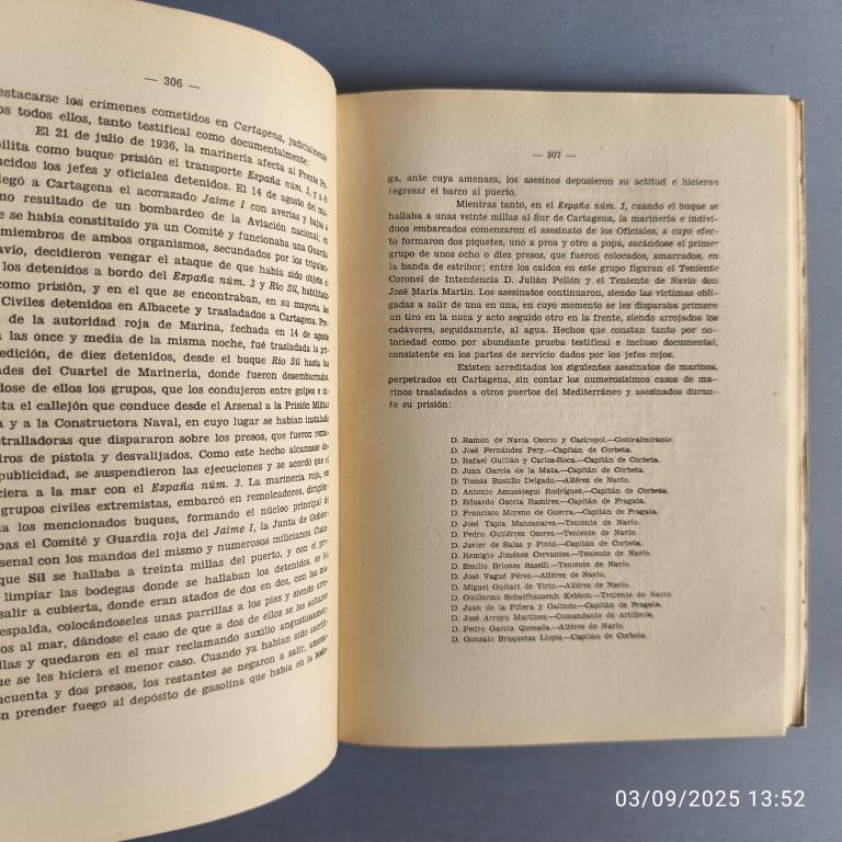 A pesar de su absoluta parcialidad, sigue siendo uno de los más importantes documentos para historiadores de la Guerra. Lomo amarronado, con marcas de celo, sellos de anterior propietario, interiores limpios. Unas discretas picaduras en la cubierta anterior y preliminares (una llega a la p. 28).