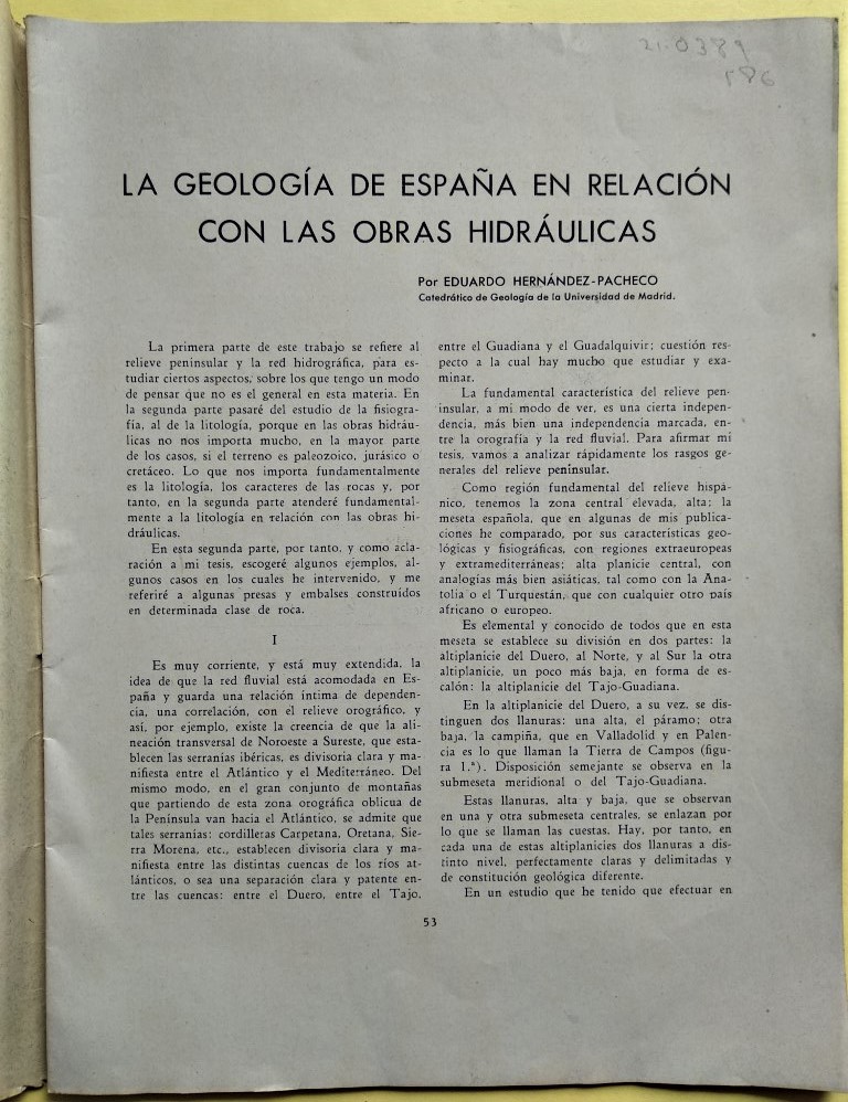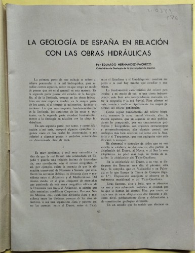 La Geología de España en Relación con las Obras Hidráulicas. Curso de conferencias 1934 - 1935.