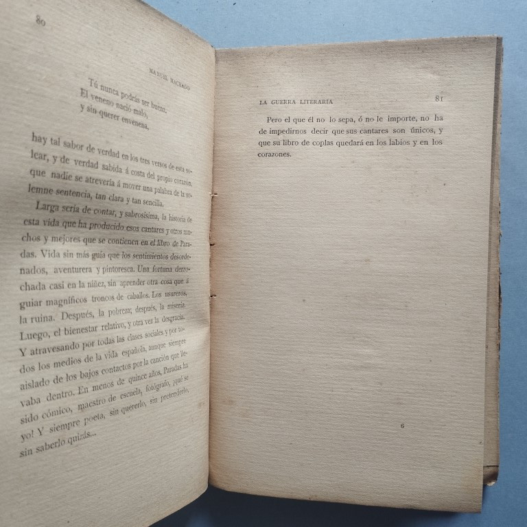 Un discreto taladro que traspasa las primeras 8 hojas.; pequeño desperfectos en el lomo, alguna huella de óxido. Intonso.