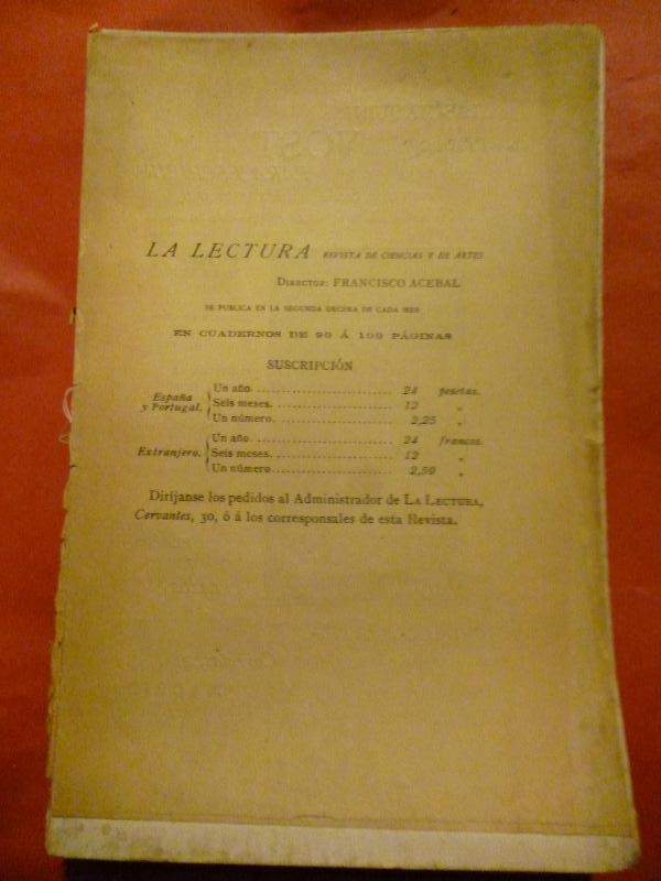 Juan Valera (las Inducciones del Sr. D. Pompeyo Gener), Rafael Altamira, Benavente, etc. Faltan la cub. anterior y el índice.