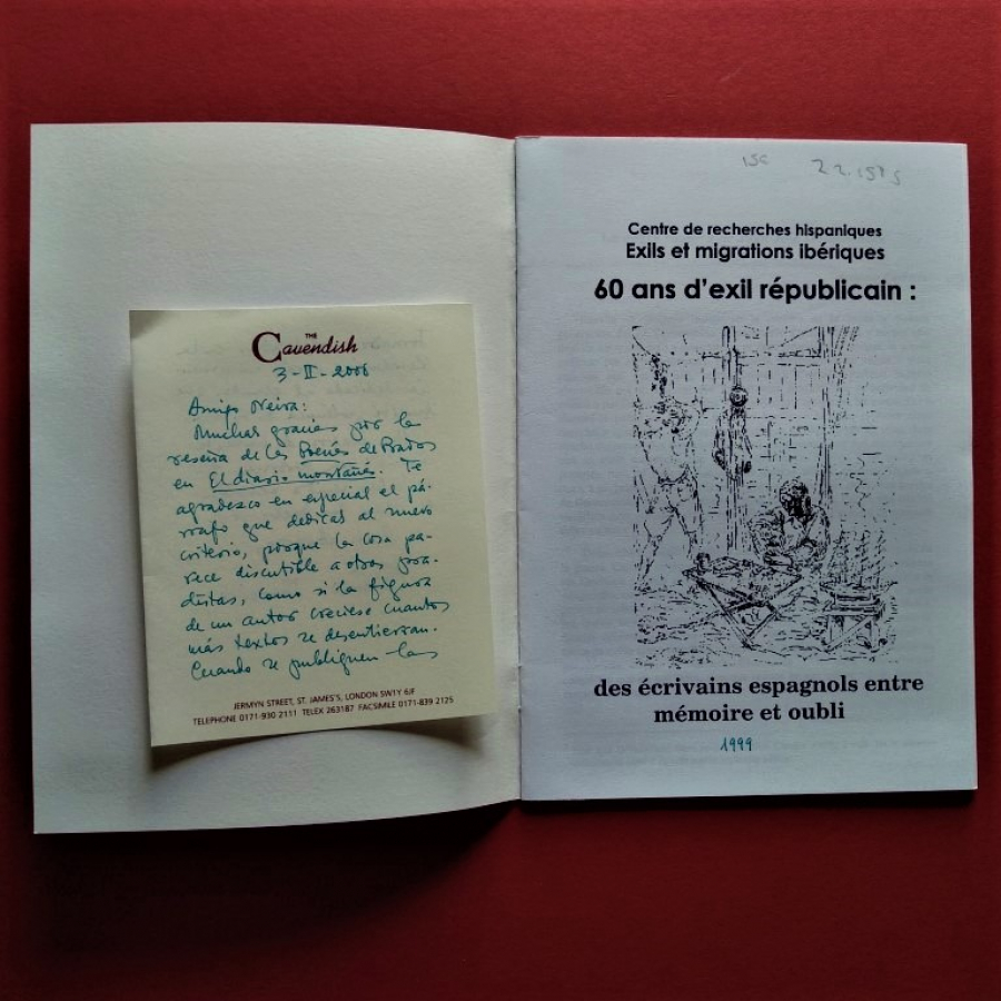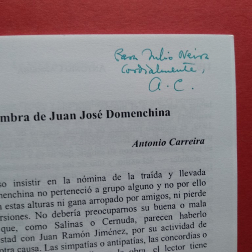 Cariñosa dedicatoria autógrafa al crítico Julio Neira, con una carta.
