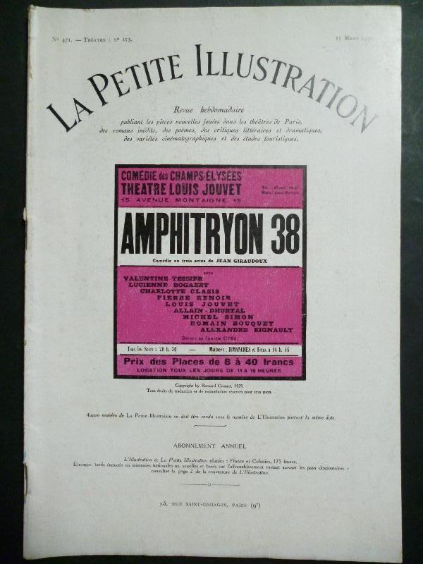 La Petite Illustration. Revue Hebdomadaire. Nº 471. Théatre: Nº 253. Jean Giraudoux. Amphitryon 38.
