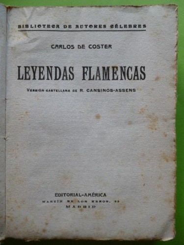 LEYENDAS FLAMENCAS. Novela. Vesión castellana de R. Cansinos-Assens.