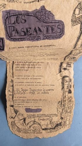 "Pergamino", with a green hanging cord; mimeographed text typed and handwritten, reproduced on two sheets of brown paper torn at the edges and joined together; title on torn purple paper, mounted. No. 168 of an edition of 200 copies. 4 copies in WorldCat.