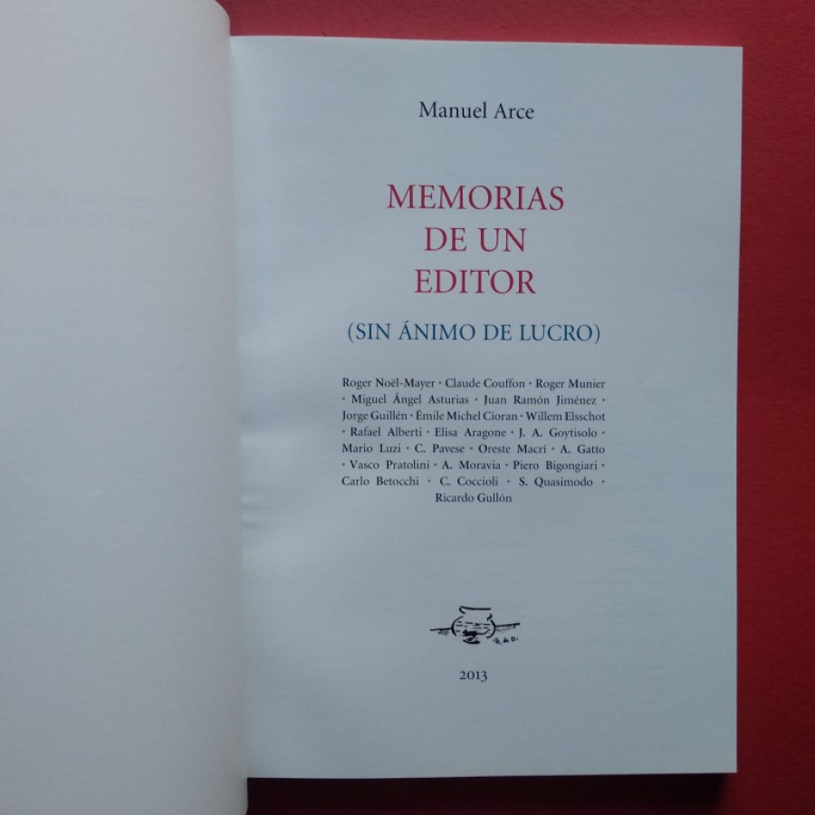 Memorias de un Editor (sin ánimo de lucro). Roger Noël-Mayer. Claude Couffon. Roger Munier. Miguel Angel asturias. Juan Ramón Jiménez. Jorge Guillén. Rafael Alberti. J.A. Goytisolo. C. Pavese. Oreste Macrí. Vasco Pratolini. A. Moravia. S. Quasimodo. Ricardo Gullón...