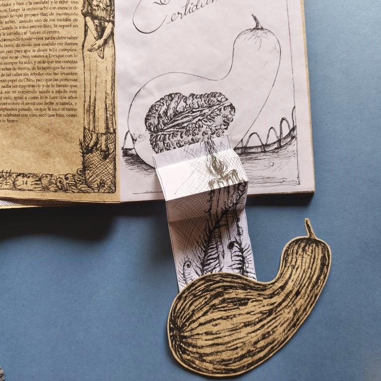 Wrappers, stapled. Covers decorated with illustrations and cut-out, coloured titles. Risographed text on brown and white paper, featuring coloured illustrations and a few details that open out in a concertina; a cut-out, coloured bookmark. No. 15 of a print run of 200 copies. More photos on our website.