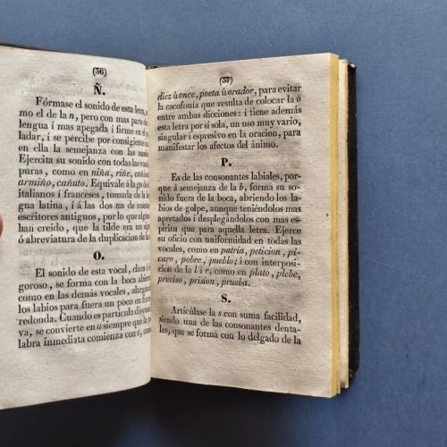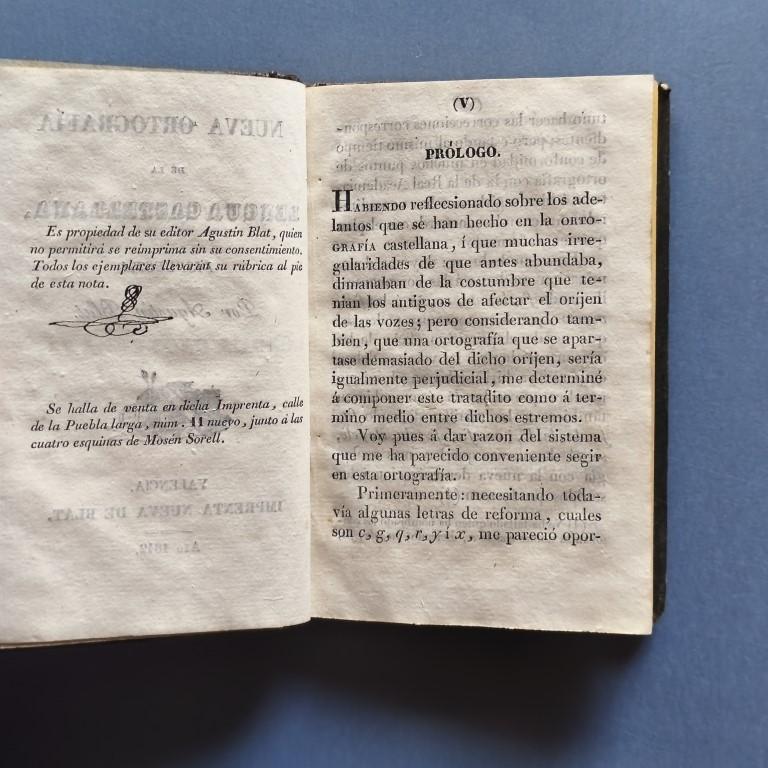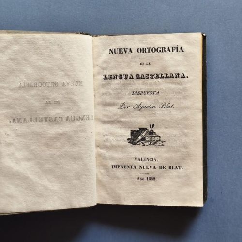 Muy buen ejemplar. Libro raro. No lo recoge Palau, tampoco hay en la BNE, el CCPB solamente recoge un ejemplar en la Biblioteca Valenciana, WorldCat otro en la Universidad de Navarra. El autor publicó otro libro sobre la lengua valenciana y Rasgos Poéticos a la Paz (1860), un poema que solamente emplea la vocal 'A' cien años antes de la epopeya del francés Georges Perec.