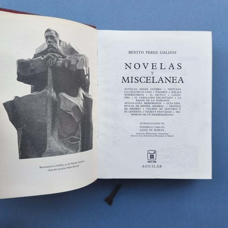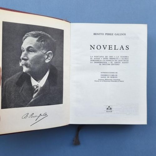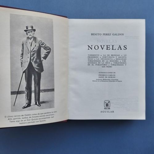 OBRAS COMPLETAS. Novelas. Tomo I. Serie de la Primera Epoca. La Fontana de Oro. La Sombra. El Audaz. Doña Perfecta. Gloria. Marianela. La Familia de León Roch. La Desheredada. El Amigo Manso. El Doctor Centeno. Tomo II. Serie contemporánea. Tormento. La de Bringas. Lo Prohibido. Fortunata y Jacinta. Miau. La Incógnita. Realidad. Torquemada en la Hoguera. Torquemada en la Cruz. Torquemada en el Purgatorio. Torquemada y san Pedro. Tomo III. tomo III: Novelas, Miscelánea (Novelas: Angel Guerra. Tristana. La loca de la casa. Nazarín. Halma. Misericordia. El abuelo. Casandra. El caballero encantado. La razón de la sinrazón. Miscelánea: Memoranda. Guía espiritual de España (Madrid). Crónica de Madrid. Toledo. su historia y leyenda. Viajes y fantasías. Memorias de un desmemoriado). Introducciones de Federico Carlos Sainz de Robles.