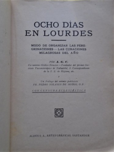 Ocho Días en Lourdes. Modo de organizar las peregrinaciones, las curas milagrosas del año. por A.G.C., ex-interno Médico Director