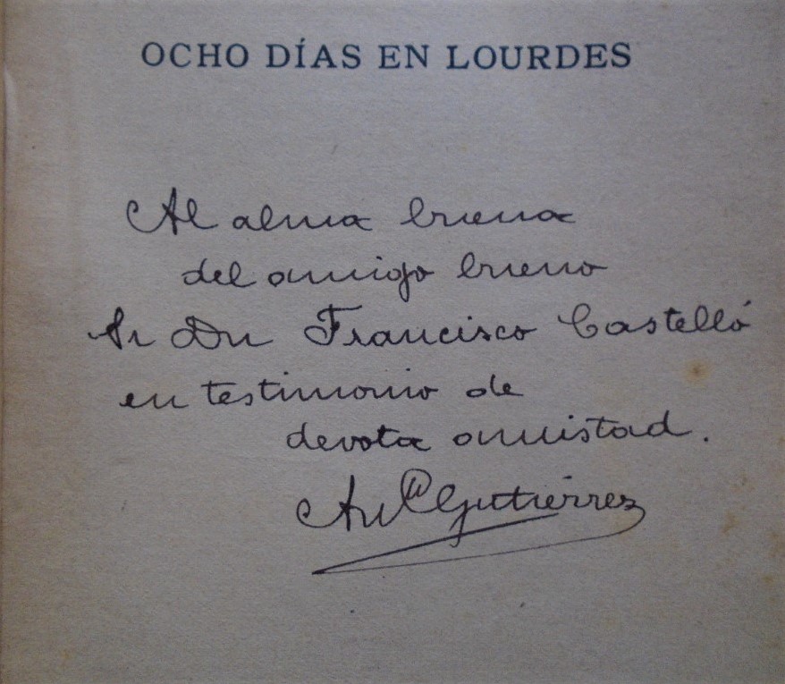 Buen ejemplar. Dedicatoria autógrafa, firmado Antonio(?) Gutiérrez.
