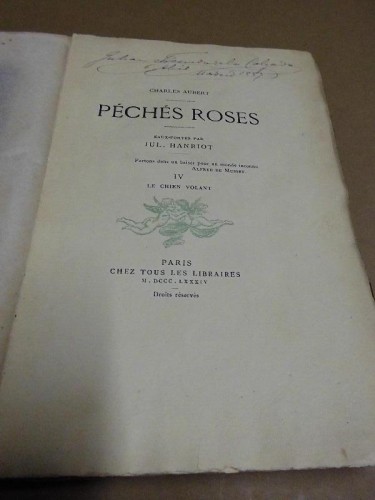 Aguafuerte de Jules Hanriot, viñeta impresa en verde en la primera página de texto.
