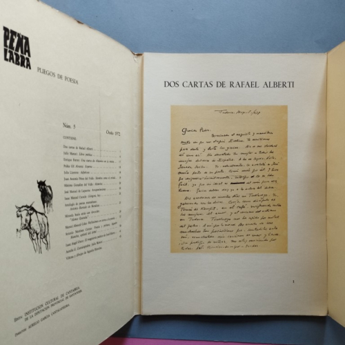 2 cartas autógrafas e inéditas de Alberti del 1928; poemas de Maruri, dibujos de Augustín Riancho, etc. Breve apunte en la cubierta.
