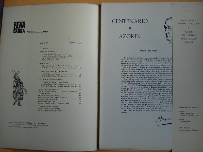 Homenajes a Azorín, Neruda (texto de M.A. Asturias) y Jorge Guillén.