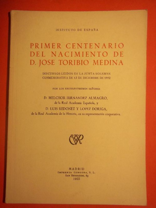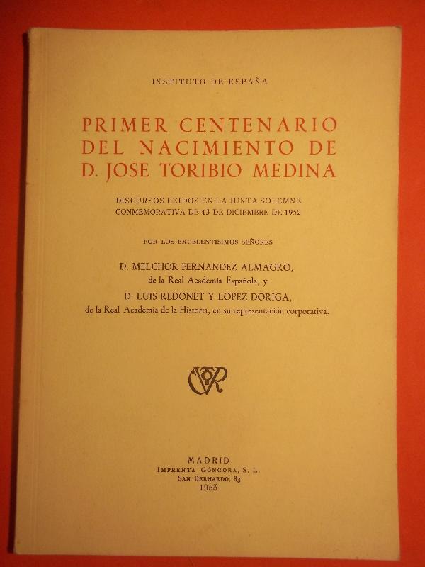 Primer Centenario del Nacimiento de D. José Toribio Medina. Discursos leídos...