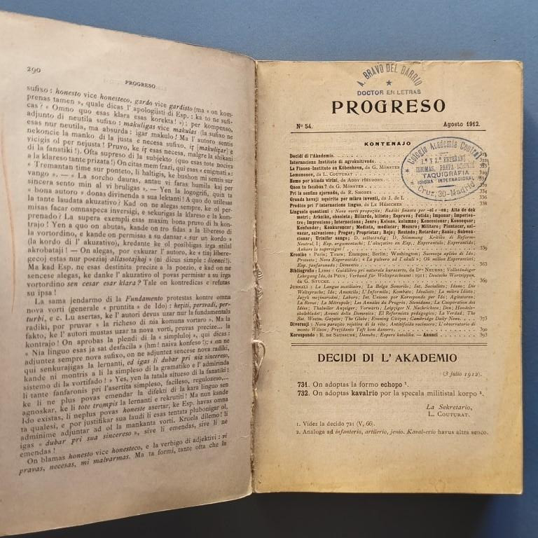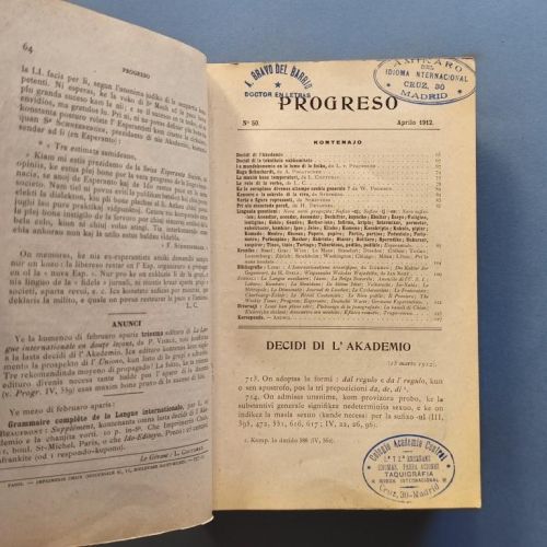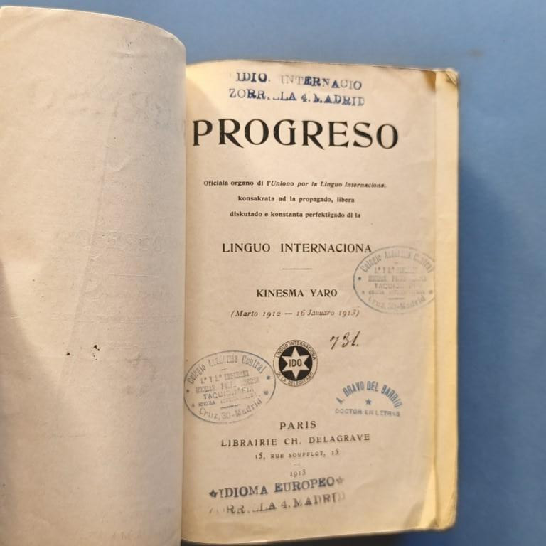 Progreso. Oficiala organo di l'Uniono por la Linguo internaciona, konsakrata ad la propagado, libera diskutado e konstanta perfektigado di la Linguo Internaciona. . Kinesma Yaro, Marto 1912- 16 Januaro 1913.