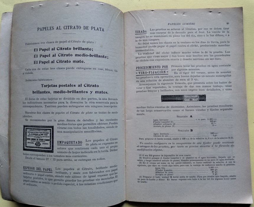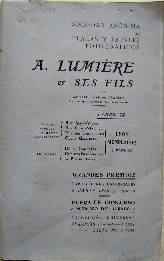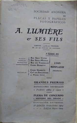 Tres punzones de grapas en el margen superior; tenue sello de proveedor de productos fotográficos en la cubierta.