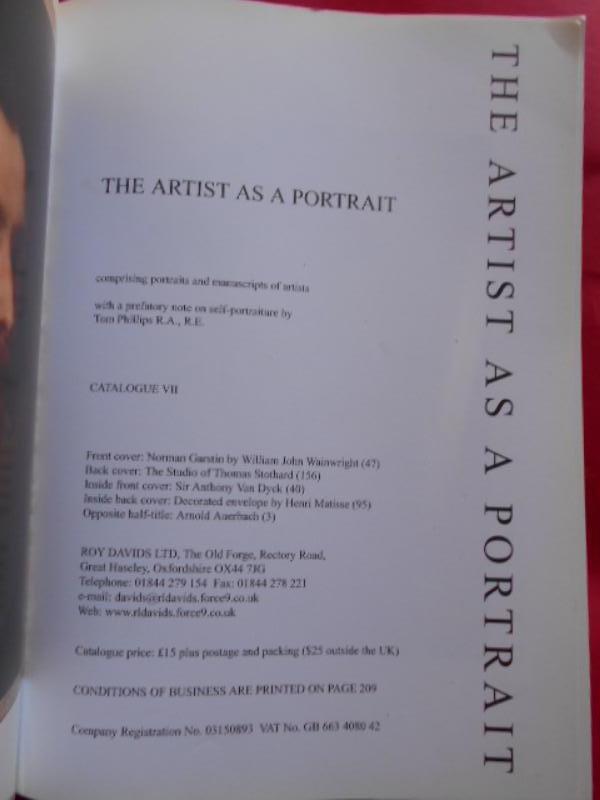 Priced catalogue of 185 items: autograph letters and archives, original drawings, paintings and photographs: Audubon, Beardsley, Beerbohm, Blake, Bratby, Burne-Jones, Dadd, Delacroix, Van Dyke, Gaugin, Gill, Goya, Hogarth, John, Lear, Lewis, Matisse, Magritte, Monet, Moore, Morris, Reynolds, Romney, Rossetti, Ruskin, Sickert, Spencer, Sturge Moore, Turner, Watts, Whistler. Davids catalogue number VII (7). One corner bumped, otherwise a very nice copy.