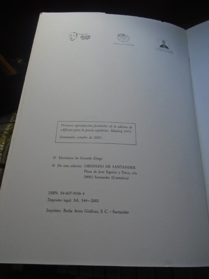 Primera reproducción facsimilar de la edición de " Alforjas para la Poesía Española". Madrid 1971