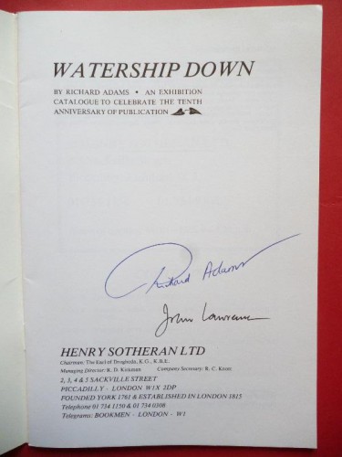 Watership Down. An exhibition catalogue to celebrate the tenth anniversary of publication. With a foreword by Richard Adams.
